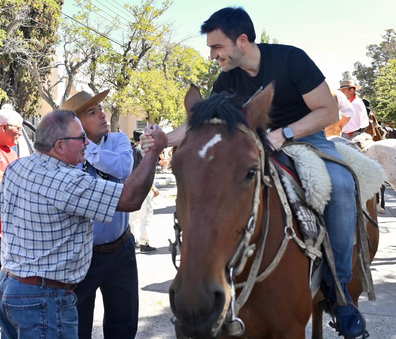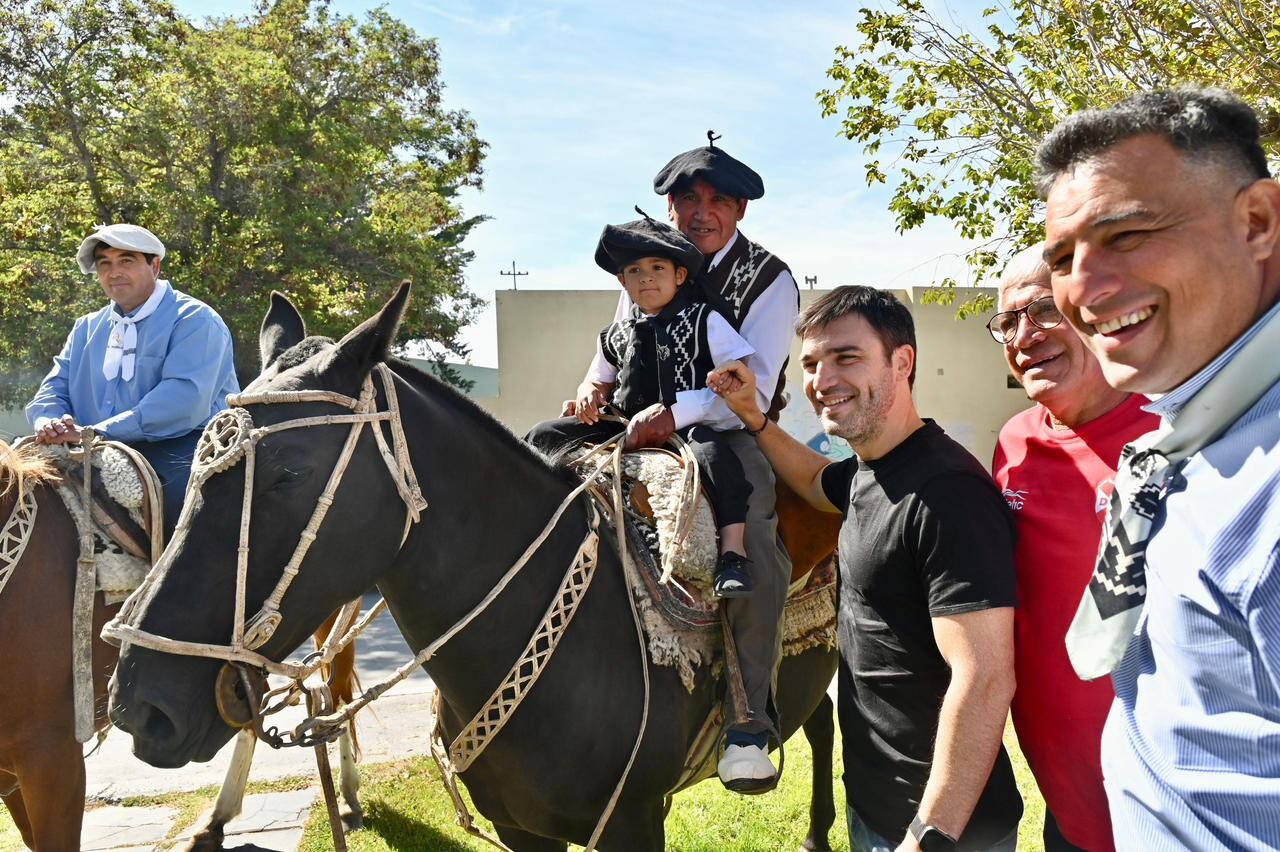 Acompañaron al mandatario el intendente local, Sebastián Balochi; el presidente del Club Deportivo Sarmiento, Jorge Mario Muñoz; el subsecretario de Protección Ciudadana, Guillermo Almirón; el cura párroco Ricardo César Costantini; concejales de la localidad; funcionarios provinciales y municipales; más de tres mil vecinos y visitantes y trescientos jinetes.